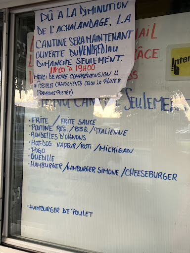 Read moreJe me suis fait servir des saucisses vertes pour ensuite me faire dire que c'est normal c'est toujours comme ça quand on les stim, pourtant je ne suis pas à mon premier hot-dog!! On m'a parlé de façon indécente devant plein d'autres clients!! Comme si c'est moi qui avait tort de dire que mes saucisses étaient vertes. Très très très mauvais service client!!! A deux étoiles je...