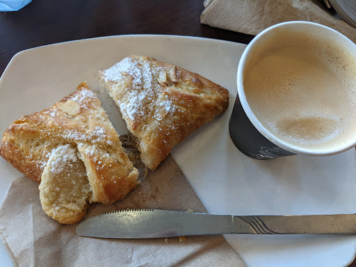 Read moreUn dimanche en fin d'après-midi, il fut difficile de trouver un lieu où me détendre avec mes parents autour d'un thé ou d'une tisane. Tout semblait être fermé dans le réseau des cafés confos. Faut-il blamer les coupures d'horaires dues à la pandémie? Peu importe, ma recherche m'a amené à choisir Café Van Houtte, chaîne établie et de renom. J'ai senti très vite que l'accueil était plus ou moins courtois et désinvesti; ma bonhomie presque indésirée. Ma commande fut exécutée dans un léger chaos et la confusion régnait même s'il n'y avait visiblement aucun nouveau client mis à part nous, et je me dois de le préciser: nous étions à trente minutes de la fermeture. J'espérais que ce soit tout, hélas, tisane, café et viennoiserie furent déposées aléatoirement sur un comptoir sale et imbibé de lait stagnant, en dépit de la guénille bleue qui ne demandait qu'à torcher le tout d'un revers de la main. L'ambiance au café était plutôt calme et le temps maussade. Étant moi-même issu de la restauration, j'assume que les mauvaises journées, le manque d'aliments, de main d'œuvre ou d'expérience de celle-ci sont des désavantages affectant la qualité du travail. Ma tisane aura su m'apaiser malgré tout, après une journée de caféine intense. Les chaises et les tables étaient invitantes et confortables, la clientèle pleine de vie et heureuse d'être sous le toit charmant du Café Van Houtte. J'y retournerai...