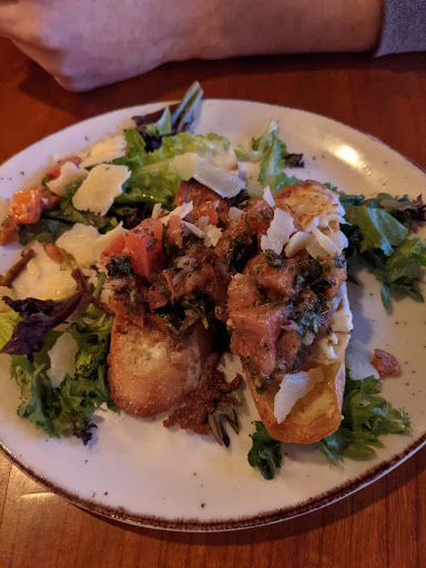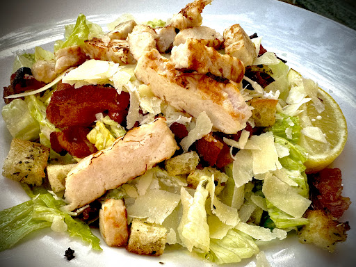 After that, I had ordered bruschetta for an appetizer. The mix had too many spices and was watered down, to add it was on a Baggett bread with melted cheese which was drenched and mushy. I had mentioned this to our server who passed on the message to the kitchen. Then our mains came and disaster struck. I had a chicken burger with a side caesar salad. The cheese was not completely melted on the burger and the chicken was one of a frozen patty with was disappointing. The salad was not better the dressing tasted like mayo with too much citrus, capers, and no garlic. Now for the real problem, the menu never mentioned anything about anchovies in the Cesar salad and normally all allergenic ingredients are mentioned on the menu. My fiancé has an allergy to iodine and had a caesar salad. When I tasted the anchovies in the dressing it was too late she was having a minor allergic reaction which forced me to rush to the pharmacy.