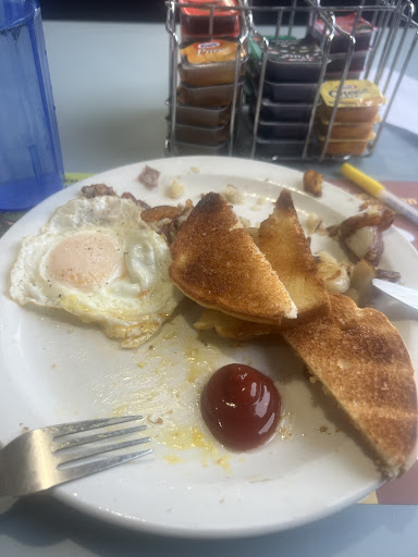 This was my first visit & my last. When we arrived early afternoon on October 30th, the server told us to pick any seat, so we sat down at the cleanest of the dirty tables. The server came back and cleaned the food/dishes that looked like they were sitting for an hour. He took the dishes away, but didn't bother wiping the table down. It was disgusting. The paper placemats stuck to the table & there was hair on the table. We asked about breakfast & he never came back to take our order. Someone who looked like they've been there before took some cups and poured us some coffee. The table was so dirty the coffee mugs stuck to it. We waited at least 25 minutes & the server never even came to take our order let alone refill the coffee he didn't bring us. We ended up walking out & then the server told one of the guys with us that we had to pay for the coffee. I've had bad service at restaurants every once in a while, but the bad service at your establishment makes the worst service I've had at a restaurant feel like a 5 star restaurant. I'd suggest a career adjustment be in order for whoever was working...