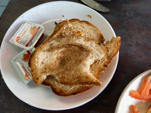 The bad was really bad, starting with the food. Everything and I mean everything was cooked in what I (and my Buddy) assume was old/bad cooking oil. It smelt like old tires and tasted just as bad. My toast (I had the breakfast) were inedible. As I was informer later by the server , even the toast were cooked on the grill in this oil. (See Pictures). My buddies wrap suffered the same fate and he just tore most of the wrap away from the ingrediants contained within and ate them with his fingers.