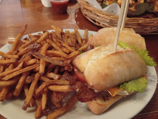 The atmosphere could be improved with a remodel and include a British Pub decor. The staff are always pleasant and I think most of the food is made in house. The burgers taste like homemade patties and the pizza has been quite good on 5 occasions we've had it. The taco salad was decent and you can add guacamole into your order. The fries also look and taste like in house product. They're thin and not cooked in canola oil and taste better for that reason. We wish they would consider adding in "Triple Cooked Fries" like you can get in Britain and then have a crunchie outside. We have not tried any of the desserts as yet. We live in the area and had not ordered food from here until other neighbours reported that the food was good and for the past 18 months we frequently order ahead and do takeout especially on busy days. We will continue to takeout food from here. The beer selection is also very eclectic and extensive. The fellow in the off sales area is pleasant and knowledgeable as well. We also lament that there is no outdoor patio in the back. It's just prairie but would be nice to have a bit of a patio with hedges or some greenery. Be aware that the main entrance exterior frequently have cigarette smokers taking a break from their VLT playing but you pick up your takeout in the off sales entrance on the south side and to date we have not encountered lingering cigarette smoke at that entrance. Years ago Burton Cummings visited the pub etc fairly frequently. The locals usually tried not to bother him and respected his "off time" if I recall correctly. We never saw him but the locals spoke of his presence there and...