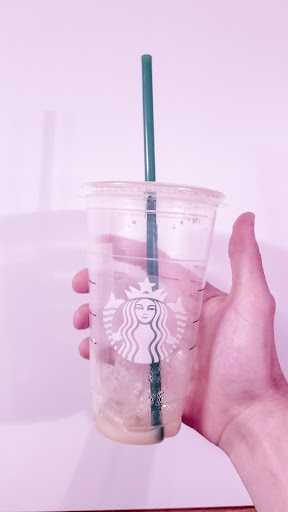 Read moreWe placed a mobile order. We were greeted. We got our order and had to rush. When we were about to enjoy our order, the double cup of my order (which I did not ask for by the way) was just so yucky looking that I doubted if the drink was made clean/properly (photo posted). I think they were trying to save the sticker where my name was on so they decided on making my drink in a different cup but use the other one to double cup. I dont mind a handwritten name to identify a drink. The cup looked liked it was the spill and stain from the other drinks they were making that time (I hope it did not roll on the floor and picked it up). I didnt order something green nor dark brown..light brown yes. But yeah...not so starbucks quality IMO. So yeah, did not regret...