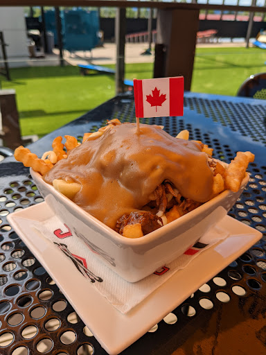 I arrived at the top floor after making my accent through what I can only describe as an escape route plastered with badly photoshopped canadiana icons. I take my seat, and my head swivels as if I'm watching the Olympic ping pong finals. I see a bachelor party, some couples, and a father & son using the batting cage(nothing out of the ordinary, im sure). It's now that I realize my arms have become ever so stuck to this table I've decided to call my own. Cue server stage right. We're boys, of course we're getting tankards. As we are spritzed with mist our beer arrives, you better believe we never see that employee again. I begin my second beer when I kid you not one by one. An entire youth baseball team enters the area. This is not a few kids showing up with their parents for some fun in the batting cage. This is matching shirts, backpacks with their own equipment, and clearly the coach who is supervising these kids that were just dropped off. Correct me if I'm the only one that finds this strange(it throws me off a bit) Keep in mind that 40 minutes have pasted. The third different staff has arrived to take our food order. We ask for an order of garlic fingers ( we hail from the east coast iykyk) cue 4th different staff to bring food. Any staff that wish to turn whistle blower, please pm me with what your kitchen used as a cheese alternative on the garlic fingers. A four year old could recognize that cheese does not behave like that. A basically inedible experience. After settling my bill with the never-ending supply of waitstaff, that's right, I never saw the same person twice. Confusion weighs heavy on me as I begin my shameful decent from this misty circus. The doors to freedom are in view as I receive a cesarean dagger to my back "how we're the garlic fingers"
