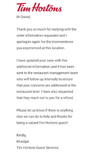 UPDATE 2: I have been trying for 10 days to get a refund for the order that wasn't completed. The support team and messenger team has sent three request to the franchise location. So far they have ignored each request and I have heard nothing back.