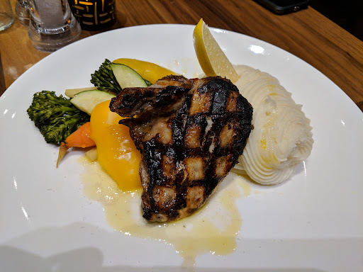I asked what was the choice of free drink that comes with the room. Cocktails on the menu or a very small choice of beer/wine. Once sit : Things explained to me at the entrance changed, just simple cocktails, not those on the menu. Guess I should have read because the staff was wrong. Got served a 1/2 glass full of pur low quality gin and tonic. (I asked for choices : only Tanqueray) Then I got told that I needed to buy a main course to be able to enjoy my free drink. Even choosing an entree pricier than a main course won't save you. The menu is very expensive and pretty simple. All the show on high quality pieces of meat whitout work in the plates. (Ex : Big cut steamed vegetables, no salt, no butter, no love) The place is all for your eyes. Very nice and catchy decorations. More employees than clients with the place half full. Have less doing nothing and more quality ones that can serve good basics drinks at least ? Put some love in the plates. Switch some of the huge amount of alcohol for quality ones and good tonics instead ? A very good place to waste large amounts of money on pricy...