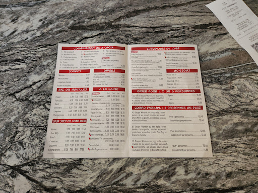 Quand nous sommes rentrés, nous avons fait notre chemin vers où que l'on commande et nous avons choisi sur un grand menu, j'étais avec un ami, j'ai alors commandé et quand jai demandé à la caissière une question sur c'était quoi la nourriture, elle n'a pas été d'une grande aide. Quand nous avons commandé, pour 2 3 choix cela nous à coûté environ 30$. Nous avons étés servis, par une dame très gentille qui nous à donné la nourriture en un temps record! Tout était chaud et frais, c'était assaisonné à souhait et un egg roll nous à été donné gratuitement, quand nous mangions, beaucoup de personnes commandait, les portions sont grosses pour le prix. J'ai été un peu plus déçu par le stationnement dur à trouver et très peu de table dans...