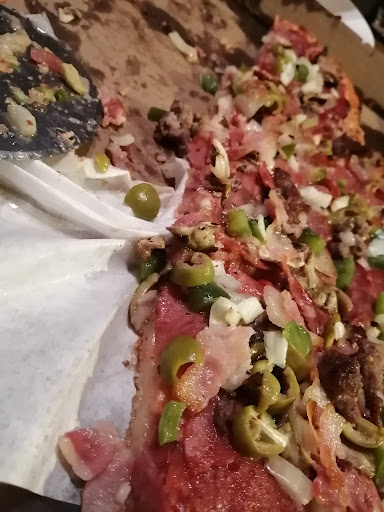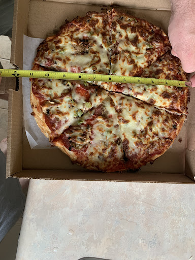 Rendu au repas, nous avons commander une pizza pepperoni 12 " et un frite moyen. La pâte de la pizza était vraiment mince, comme ci c'était une marguaritta et personne ne nous a demander notre avis. Le format des frites était un peu mensonger, l'exemple était une boîte pour les repas à emporter ce qui n'était pas équivalent dans une assiette.