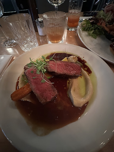 I got the âContre-Filet de bĆuf highlandâ for my main dish. It was pretty good! Cooked to the temperature I ordered. The sauce on the plate went well with everything else. Parsnip purĂ©e was good, however, it was cold rather than room temperature/warm. Carrot was cooked well, it wasnât hard to cut. I didnât care for the other vegetables personally.