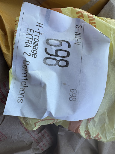 Le seul temps oĂč tout va bien, c'est quand le gĂ©rant me donne ma nourriture. Les employĂ©s ont toujours l'air de faire n'importe quoi. Si c'est pas du "blabla", c'est la musique. C'est a un tel point que ça devient gĂ©nant avoir un McDonald's dans cette ville.