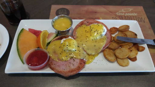 Le service peux être long ! Une fois sur deux la bouff est à mon goût donc si je désir manger du resto sans sortir je call sinon je vais manger ailleur . Dernière fois que je suis allé déjeuner les oeuf était pas bien cuit, car quand le blanc coule dans l'assiette pas asser cuit . Pour un restaurant ya place à amélioration. Pour y avoir retourner chercher une commande au comptoir, j'arrive, la moitié de la commande est prête , j'ai dû attendre 10 à 15 minutes de plus car la cuisinière a pas faite ma commande au complet résultat j'arrive chez nous la partie de la commande qui était prête à mon arrivée est ben frette et ma poutine steak haché pratiquement pas de viande les frites encore blanche pas cuite avec un morceau de poulet, un morceau de panure d'oignon français et une patate déjeuner ben noir tellement elle était cuite ! Pendant que j'attendais la cuisinière avait une humeur de marde . J'appel pour parler au gérant qui me propose de me rembourser quand j'arrive là la cuisinière me rie en pleine face , le gérant lui dit d'aller plus loin et refuse ! Wow elle ne respecte même pas le gérant alors si vous pensez qu'elle aura du respect et prendra le temps de faire à manger comme du monde oublier ca !! Le services à l'acceuil et certaines serveuses sont super !! Résultat j'ai refusé de me faire rembourser pour qu'il y est une sanction au prêt de l'employé mais rien a été fait le nouveau gérant arrive pas à la petite orteil de Hugo...