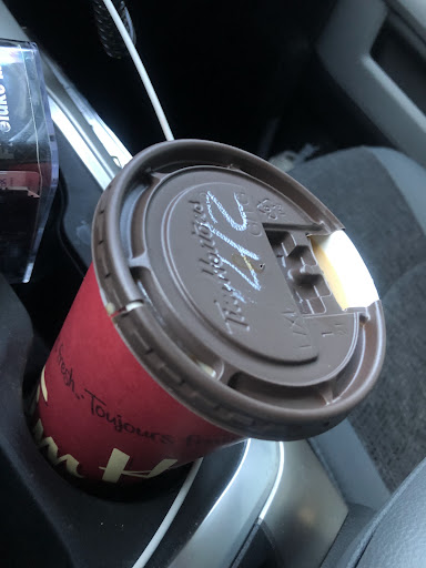 Mais non. Je recoit ma brioche froide, une timatin et un café sur un cabaret pour manger sur place. Je redemande pour l'avoir à emporter, elle me dis oui, mais ne met rien dans un sac. J'attend pour ma patate dejeuner (dans un trio) mais la gerante me dis que je ne l'ai pas commander (jai bien commander un trio avec une brioche en extra). Après environ 20min depuis mon entrée dans le Tim, que je décide de ne pas attendre pour ma patate et je quitte. En route, je m'appercoit que mon café a de la crème...... merci mais vous avez complètement échoué l'une des tâches les plus simple offertes par la société.