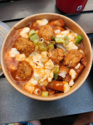 Poutine très bas de gamme (tiède aussi), frites congelées, très peu de fromage et des tout petits morceaux qui avait l'air d'un fond de sac...