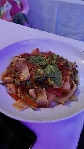 We went there with a group of 5 adults and 2 small kids. The adult menu is great, lots of options. However they do not have kids menu, which is too bad. The food we ordered was all good. The garlic bread was tasty. The calamari fritti was a bit tough. Pastas were very tasty, but pizza was too salty. We had to wait for long time for any part of the service but unnecessary long for the bill. The alcohol menu has only wine bottles , no options for a glass of wine, which were able to order, but we did not know what size of the glass and what we were going to pay for it. Overall great place with nice ambiance with loud music, so make sure you donât have a...