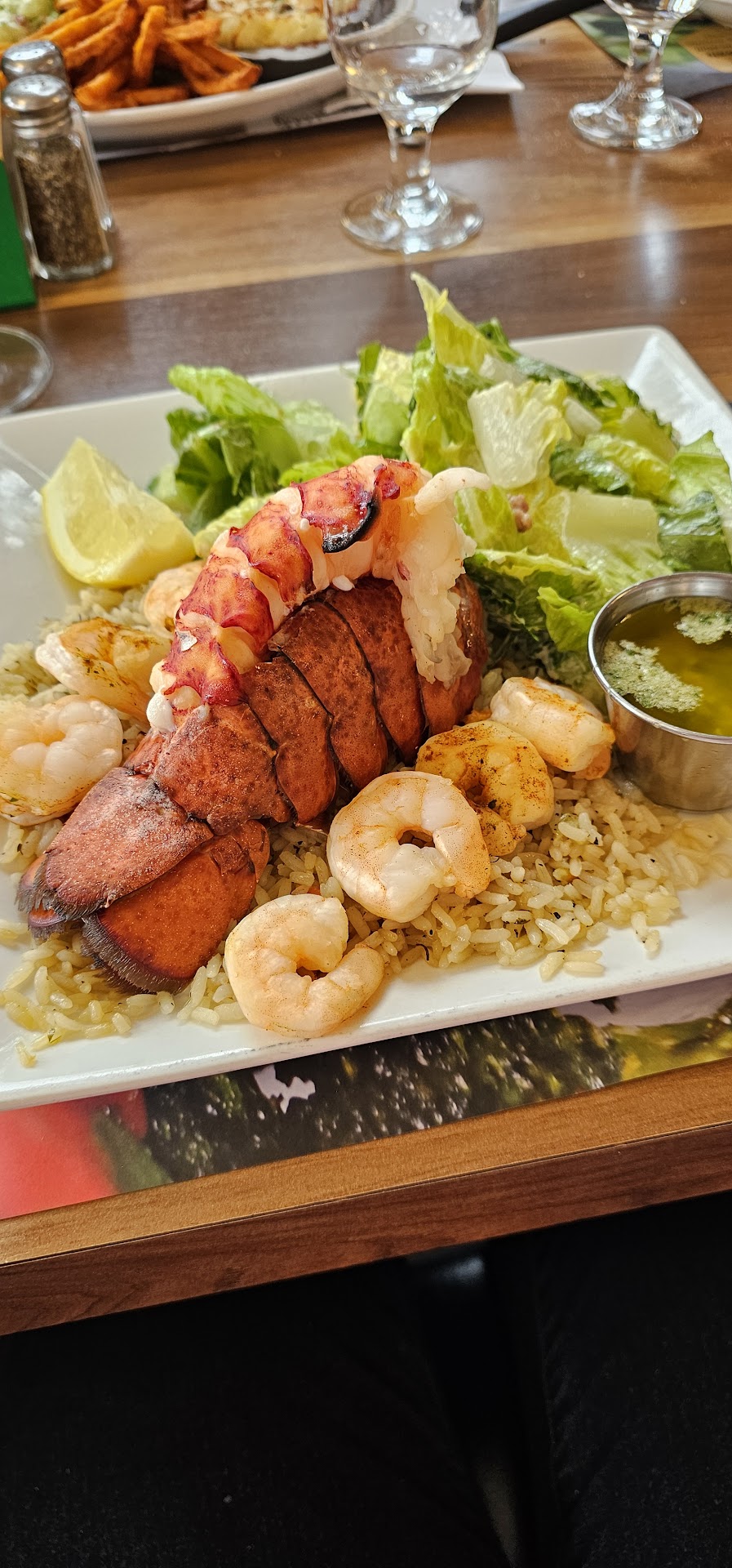Menu: L'établissement propose un menu varié, mettant en avant des spécialités telles que les steaks certifiés Angus sur grill et les fruits de mer. Les plats sont généralement décrits comme généreux et savoureux. Un client souligne : « Le steak Angus était parfaitement cuit et fondait dans la bouche. » Toutefois, certains avis notent que la qualité peut varier, surtout pendant les périodes de forte affluence : « Les fruits de mer étaient frais et délicieux, mais le service était un peu lent ce soir-là. »