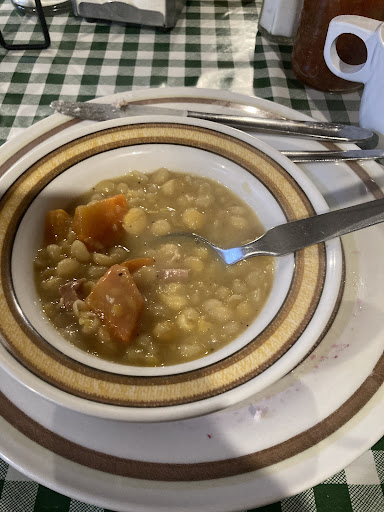 Read moreService vraiment ordinaire, ça pris un bon 20-25 min avant qu'on nous apporte seulement la soupe, les pois étaient durs et pas cuites. Puis on nous amène le bacon et oreilles de criss seulement, le jambon/omelette/saucisse à suivi seulement après 20min d'attente.... (La quantité de nourriture sur l'assiette pour le groupe que nous étions était insuffisant) le jambon était sec, les patates manquaient de goût, puis les desserts, étaient bof...la serveuse était bête et non présente. On devait toujours attendre pour chaque plat, ce qui perd l'intérêt de plusieurs à la longue. Il a fallu attendre pour la tire dehors, et littéralement ce battre pour le peu qui a été verser sur la neige, il y a eu seulement un service de tire puis plus rien. Il y a meilleur dans le coin, ne gaspiller pas...