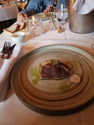 What a place. We showed up at the restaurant and the waiter popped open our bottle of persocco. We ordered the 5 service tasting menu and we were not disappointed. The scallop entre was amazing. Perfectly seared and tender . We then had a fish course . The fish was tender and super flavorful. Then we had the pasta course stuffed with duck and mushrooms. Very good. But a little bit of a bitter aftertaste. Still very very good. The meat portion although small was tender and the seared foie gras was a revelation. Amazing from start to finish. The dessert was amazing a mi cuit of chocolate with strawberries. Amazing. One gripe unfortunately tables are super close together so it was pretty noisy and the dining room was very hot 25 degrees. But really apart from that it was an awesome experience. Great job. Our servers were great and super nice. 3h experience and...