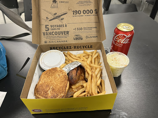 What a disappointment again !! In the past 2 years this place it has been a hit or miss . The only reason why we really go here is because our little daughters enjoys the chicken animal meal. My husband usually likes it more than me . We buy the chicken breast meals and we pick up our food through the drive through. Tonight the food was so awful that I would have brought it back . The chicken was super extra dry , greyish brownish color and dark grey bones. Tasted atleast 3 days in the fridge (yes I unfortunately know that taste ) The gravy was really thick and extremely salty, again tasted like it was cooked 2, 3 times ?? Very disgusting 😒 The fries were finally cooked tonight but we only received a few .. the coleslaw tasted like old cabbage , such a sour taste . I suggest b4 serving cabbage someone should test it out first because rotten cabbage taste extremely bad .Even my daughters wrapped cookie was stale . This will be the last time we ever go to any Saint Hubert ever again as I never want to ever experience such nastiness ever again in my life .I am an extremely clean person and the food made me spit in my plate and brush my teeth right away . Even my dog doesn't want it . What a disaster...