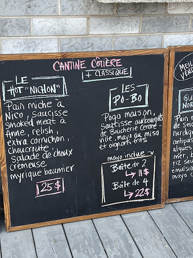 Read moreNous sommes allés à la Cantine Côtière avec de belles attentes, considérant la réputation de l’établissement. Le service a été très rapide et la personne à la caisse était courtoise. En allant à la salle de bain, on passe par la cuisine qui a un concept ouvert. Nous avons pu constater que les employés se parlaient durement et de façon très abrupte, jetant une ambiance désagréable dans la salle à manger. Lorsque nous avons reçu nos plats, un d’entre eux, la poutine avec ajout de kimchi, a été servie sans son accompagnement et a été chargée plus chère que le prix affiché. Les frites n’étaient pas entièrement cuites et sablonneuses. La homardille quant à elle, contenait une dizaine de grain de pop-corn non-éclatés, cachés à l’intérieur du plat, et sur lesquels je me suis presque cassé une dent. La gaspacho était bonne, toutefois très chiche en chanterelles. Quelques secondes après avoir reçu nos plats, nous avons été témoins d’une altercation entre des clients et le gérant/employés. Le client semblait soulever la piètre qualité de la nourriture et que le prix qui leur a été chargé à la caisse était plus élevé que celui affiché. Il avait effectivement raison, puisque la même chose nous ait arrivé. Le gérant lui a répondu sur un ton arrogant et hautain, et n’a offert aucune compensation. A un certain moment, une employée est sortie et a haussé le ton envers les clients, rendant l’interaction impossible à ignorer. Cette dernière a blâmé le fait que les employés sont débordés, raison qui a mon avis ne relève pas de la responsabilité des clients. Nous avons plus tard entendu le gérant discuter de la situation avec ses employés, ne s’attribuant aucune faute et se moquant du client « qui se plaint juste pour 3$ ». Un grand manque de professionnalisme… On aurait voulu aller discuter des erreurs sur notre facture, ainsi que les aliments non-comestibles qui se trouvaient dans un de nos plats, mais nous étions trop intimidés par le gérant, de peur de se faire réprimander, et nous étions franchement mal à l’aise. Globalement, je suis déçue de mon expérience, surtout quand on paye ce prix! Je n’y...
