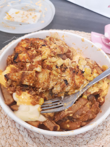 J'aurais mis 5 étoiles, mais j'ai commandé aujourd'hui une poutine, car celle-ci mintriguait depuis longtemps. Le goût est au rendez vous, mais les frites n'étaient pas tout à fait cuites, donc un feeling et goût encore un peu cru. Peut être est-ce un coup de malchance que je suis tombé, mais sinon il faudrait vérifier la cuisson, car c'est tout ce qu'il manque pour des poutine...