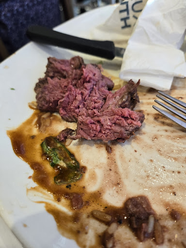 Read moreEn arrivant notre serveur n'a pas de sourire dans le visage , il.faut frotter nos chaises au lieu de ramasser les miette sur la table, le serveur les Jérémy sur les chaises pas fort !!! J'ai pris un mécanisme de boeuf avec crevettes papillions à $ 38,95 ,on s'entend que à se prix là,tu en veux pour ton argent 💰, bon sauce au vin rouge oufff trop salé amer ,j'ai été obligée de rajouter du sucre pour que se soit mangeable pas fort là!!!!! , les crevettes papillions trop cuitent comme du caoutchoucs le dessous tout ratétinées ils ont collées sur la plaques dégueulasse,le riz salé au bout et sans saveur, les quartiers de patates pas assez cuits et fades et la salade des morceaux coupés grossièrement il a fallu que je les coupes dans mon assiette pour manger déscemment et plus ,je lui fait signe il ne voit pas donc mon ami doit aller le chercher,il tourne avec le plateau et renversé par terre toute le coup de beurre à l'ail sur le tapis et manque d'en verser sur mon ami oufff pour mes crevettes papillions ils m'ont réduit ma facture de $4 hahahaha ridicule !!! Je ne le recommande à personnes c'est de l'argent jetée à l'eau !!! N'allez...