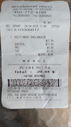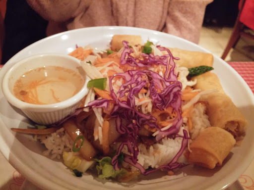 Read moreArrivée sur place la porte était barrée. Il a fallu cogner par qu'il vienne ouvrir. Nous étions seules dans le restaurant, et pourtant, l'employé est resté assis derrière le comptoir sur son cellulaire. Tannée d'attendre, j'ai du lui dire a travers la salle que nous étions prêtes à commander. La soupe était un simple bouillon avec des champignon en canne, des morceaux de tomates dures et même pas étuvées et deux petites crevettes qui goûtait vielles. J'ai pris un nid d'amour thai aux crevettes avec le rouleau. La sauce pour le rouleau était très claire et pas très goûteuse. Les nouilles étaient bonnes et bien frites, par contre les légumes beaucoup trop mous et les 3 crevettes étaient comme celles de la soupe, pris en table d'hôte et même pas de café ou thé d'inclus pour 20.64$. Nous avions choisi ce restaurant vu que les autres commentaires sont bons. On est d'accords a dire, c'est certain que nous n'y retournerons pas. Nous avons été très déçues. Ou peut être juste malchanceuse. C'est drole, le propriétaire a répondu a mon commentaire que je me suis trompé de place. Et non, j'y suis allé hier et mon commentaire est bien pour votre...