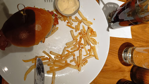I ordered take out from the hostess stand and service was not good. I arrived and was ignored by Employee 1 who checked the hostess screen then left. A couple walked in and employee 2 arrived and seated them. Employee 1 came back, checked the screen, ignored me again, and left. Employee 2 came back but before she could speak to me, the recently seated couple asked for a different table. Employee 1 arrived just then and instructed employee 2 where to reseat them. Employee 1 checked the hostess screen, ignored me again and left. Employee 3 arrives and asks if I’ve been served. I say no and she takes my order. I tell her I will wait in the hotel lobby. She says in that case I’ll take your phone number. I wait in the lobby, figuring I will get a call (silly me?) I go back in after 40 mins, my food is sitting on the counter (with my phone number clearly written on the receipt.) Employee 4 arrives and I say the take out order is mine. She tells me to wait and goes to get Employee 5, who does the payment. I get to my hotel room and the fries are...