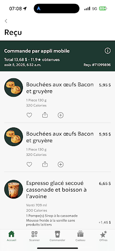 Read moreCe matin, jâai commandĂ© 1 espresso secouĂ© et 2 fois les bouchĂ©es Ćufs-gruyĂšre-bacon via lâapplication mobile afin de ne pas ĂȘtre en retard au travail.