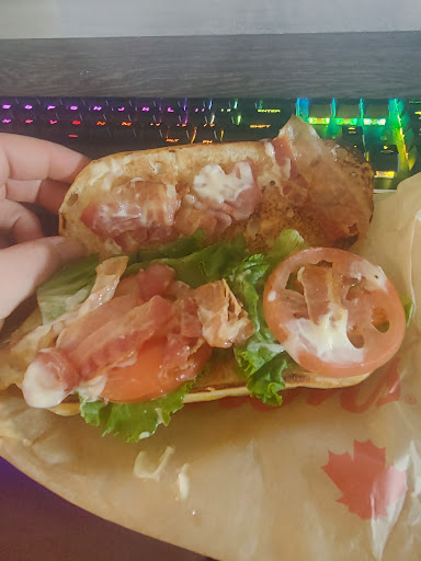Read moreTout a commencer lorsque je voulais aller me chercher du Tim Hortons à 10h pour une fringale du soir. Arrivée sur les lieux, catastrophe! PAS de bacon. PAS de poulet. PAS de pains. Franchement une honte pour le Canada et notre franchise Tim Hortons adorée. Au lieu de nous informer de la situation et des options non-disponibles sur le menu, la serveuse (qui franchement n'avait pas un très bon sens de l'humour) a proposé des substitutions aux aliments manquants APRÈS nous avoir fait payé. Résultat, un sandwich poulet bacon transformé en un wrap à la dinde! INACCEPTABLE. Je m'attends à beaucoup mieux de cet établissement maskoutain surtout étant donné qu'ils sont un des seuls Tim Hortons de Saint-Hyacinthe fermant à 23h. Je crois au deuxième chances donc je retournerai dans cet établissement dans le futur. Par contre, je m'attends à ce que mes critiques soient adressées et que je recoives des excuses du Tim Hortons...