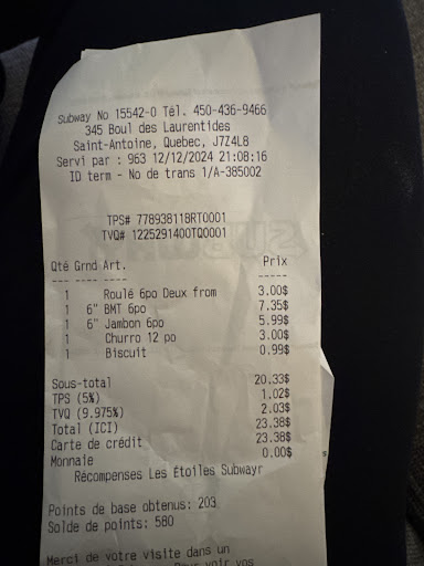 I'm thrilled with my recent visit to the Subway in Saint-Jerome! The moment I walked in, I was impressed by the cleanliness and bright lighting, it set a great tone for a fantastic dining experience. The aroma of freshly baked bread wafted through the air, teasing my taste buds & building my anticipation. The toppings selection was exactly what we were looking for, with plenty of options to suit every family member's taste. Everyone got to customize their sandwich just the way they liked it, & the staff were friendly & efficient. From meats to crisp veggies & creamy sauces, the variety was impressive. My family & I left feeling satisfied & happy with our orders. If you're looking for a quick, delicious meal in Saint-Jerome, this Subway location is a great choice!