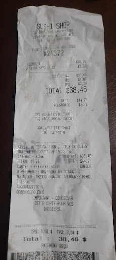 Read moreHier, 23 octobre, je passe une commande pour moi et ma copine vers 17h30, demande qu'elle soit prête pour 18h45. Je me présente à l'heure pour ramasser le souper, l'employée ne trouve rien à mon nom...elle me demande si j'ai vraiment appeler à leur sushi shop...je leurs dis que j'en suis sur et que je peux même leur montrer mon cellulaire avec l'appel fait et le temps de conversation pour bien montrer que j'ai passé une commande chez eux...ils ne veulent rien savoir de regarder mais continue d'ostiner que j'ai appelé ailleurs. (L'une des employés dit me reconnaitre car je suis un client régulier de l'endroit depuis environ 4 ans qui passe des commandes d'environ 70$ à chaque fois.) À la fin ils sont tous les employés(5 ou 6) en avant de moi à insister que j'ai appelé ailleurs et refuse tout simplement de faire ma commande car ils n'ont pas le temps car la fermeture arrive. Je suis parti bouillonnant de l'intérieur, enragé d'avoir ses 5-6 personnes sur mon dos n'admettant tout simplement pas leurs erreurs, mais dieu merci après avoir expliqué la situation au sushi shop sur Valmont près du WalMart ils ont prit ma commande malgré le fait qu'ils étaient débordé et n'aurait pas eu réellement le temps pour une commande supplémentaire aussi grosse. Je ne crois pas retourner au sushi shop sur le boulevard des Laurentiens car le manque de professionnalisme et le manque de respect envers un client fut...