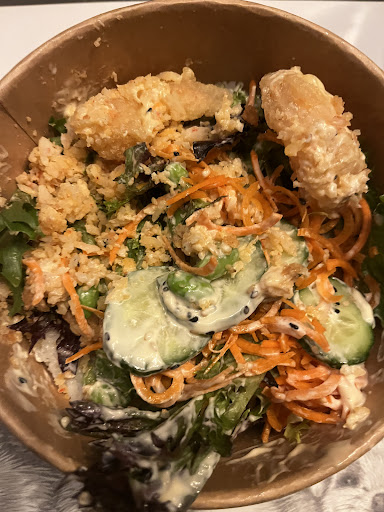 We ordered 2 poke bowls, spicy salmon and salmon/tuna. Both were amazing in their own way. The salmon/tuna didn't have sauce, but had some type of algue that was very well seasoned and carried the rest, the bowl hAd a fresh and ocean-type flavor. Spicy salmon had crunch and vegetables and a nice spicy mayo, delicious! Since we ordered online, we saw there was a spot for promo codes, after a bit of search we found codes for %off or free add-ons, so we got 5-piece California sushi free,...