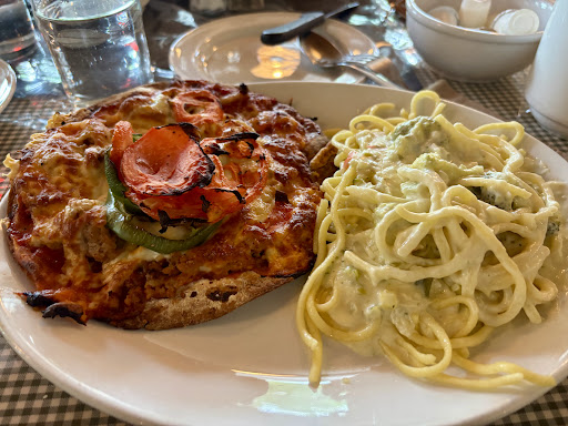 Very good pizza (5 stars for the pizza), 4 stars for the overall experience. The take out set up was a bit chaotic, there were two lines, lots of people waiting inside (for the awesome food no doubt), but no clarity what each line-up was for. The waitresses were busy and not very available to orient you of how to go about paying and picking up. Eventually you figure it out, and you wait another 20 mins on top of the first 25 minutes they said it would take. So, if you want good seafood pizza and are patient, this is your place.