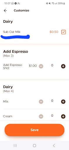 Pourtant, je n'ai jamais eu de problème au Tim Hortons, au Starbucks, ou même dans les autres A&W. J'ai toujours des substitution de lait sans devoir le spécifier.