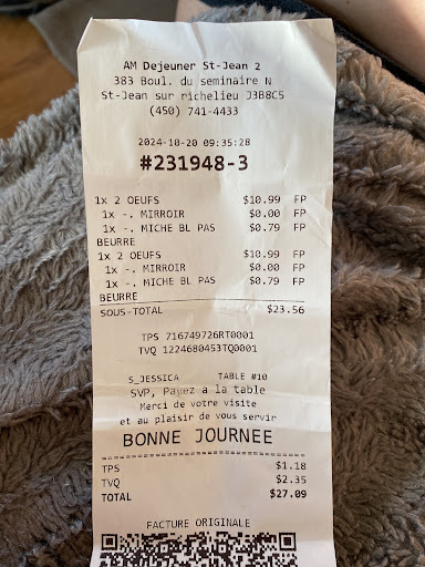 J'enlève une étoile mais c'étais à cause du service et non à cause du resto . La femme avais l'air brûlé de son dimanche on peut comprendre mais on s'est faite traiter Comme un numéro . Je mentionne qu'il était 1:45 pm donc le Rush venais de finir . On le sais vu l'allure des tables . Ça prend une éternité avant qu'elle s'arrête à notre table ( c'est correct encore là on voit bien qu'elle est occupé ) Mais aussitôt qu'elle arrive ne nous dit même pas un Salut ?! Nous demande seulement si on veut du café , ce qu'on refuse car on voulais un smoothie . Mais elle ne voulais pas prendre notre commande et est donc reparti avec sa tournée de café . Enfin elle revient après 20 minutes depuis notre arrivée pour prendre notre commande . Cette fois ci c'étais vraiment rapide et elle repart de sitôt . Je reçois mon jus mais pas mon conjoint . Elle s'occupe de nettoyer un peu et remarque que mon conjoint la fixe et on la voit repartir . Elle revient étonnamment avec nos assiettes sans le dit smoothie. Elle repart et on entend le blender .... Et elle revient bien entendu avec le jus sans JAMAIS s'excuser pour le temps d'attente. Nous avons manger rápido presto et bien-sûr au moment de payer là , j'ai droit à un sourire mais toujours pas d'excuses ou de merci . Alors elle a eu 10% de tips . Elle méritais moins mais nous somme dans le domaine et on reste un brain solidaire ..reste quon est plus indulgents envers de nouveau employé Et Dieu sais que celle-ci était une femme d'expérience de la façon qu'elle parlais aux busgirls et avec son attitude aux tables . ; Cheveux noir aux épaules dans la trentaine peut être, avec un caractère à casser .
