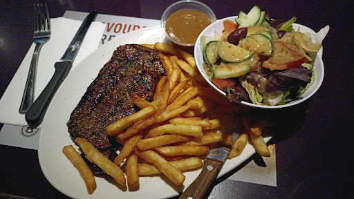 Read moreI guess this Resto doesn't specialize in steak cause it was the worst steak I've ever had. I asked them for medium rare and it was basically a rare steak. Had to send it back after waiting so long in the first place for the meals to arrive. Very long wait for a table of 4 adults with a child. My son was getting very restless as most kids do, waiting for his chicken nuggets and fries. No one at my table liked their meal. I think the burgers are good here though and that's why I rate it 3 stars. Also, our waitress was great and had a lot of patience for my English only...