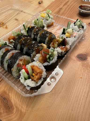 When you order sushi platter, they don't let you choose which you get. It is "chef's choice". Which I thought was like omakase, where a chef carefully chooses the rolls based on what is fresh, with a good mix of ingredients. No. This place is like a factory lineup. 7 people just making rolls continuously, and they just give you whatever is ready. That's how I ended up with half of my rolls being yam tempura rolls on a 50 piece platter. Might as well get your sushi pre-made at a grocery store. At least then it...