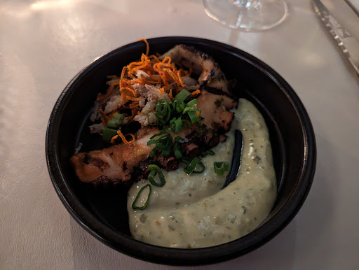 Read moreWell, charging $16 for a 6 ounce and $22 (yes $22) for a 9 ounce glass of white wine (for the cheapest wines served by the glass) is outright ludicrous and insulting to say the least. There are way fancier restaurants in the Montreal region we visited - none came close to charge such abusive prices. The Octopus I ordered was OK but served with an ugly, slimly "black Squid ink" type sauce that made the food look unappetizing indeed. To top it all of, we were presented with (and initially paid before the amount was cancelled) the invoice of another client at twice the amount we owed. So no, this was not the experience we were looking for and we will definitely choose other restaurants in the area...