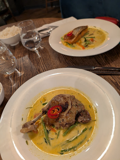 Hidden bar and thai restaurant inside Holiday Inn. Restaurant looks premium but affordable and about 10+ drive to/from Canadian Forces LRS. Most of the menu are good for sharing. Soup comes in single serving (Tom Yum) but both beef curry and red curry are sumptous and can be shared. Salade de Mangue is a hit same as the chefs panithits crispy chicken (served w/white rice). Most of the food vomes into heat and spice so ask questions and request for spicy level. We've got an amazing server which is not so obvious as shown in the photo but the manager on duty looks opposite when we went (10.23.2025 at 5pm). Smile is an option to attract...
