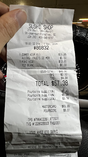 Decided to order sushi this evening from a nearby SUSHI SHOP (bout. Omer-Marcil, St-Jean) and had received a gift card from friends in Dec. 2019 (with Covid and all, never got a chance to use it) ...so as they say on their website "Sushi Shop gift cards are practical, safe, easy to use. Perfect gifts for your families & friends".