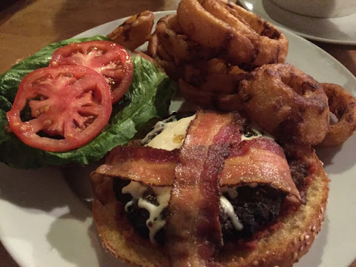 I had the bigger tide burger with bacon and cheese. It also comes with sauteed mushrooms which I opted against.