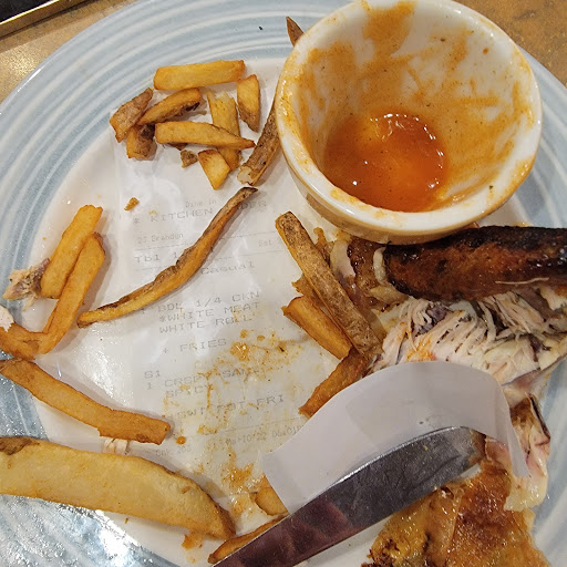 Great chicken, soup, and fries. Surprisingly the wings were not as good as they usually are. Typically they have great wings. They were well overcooked and probably shouldn't have left the kitchen. The lemon meringue pie crust was very hard to cut through, however tasted fine. Had a kitchen ticket on my plate under my food. Brought it to the attention of our server. She asked if I wanted to see if the Manger could do anything. I told her it was fine but she should pass it up as the next person may not take it so lightly. Still a great meal even though I got a kitchen ticket under my food and my gravy never made it. It was March break so the place was busy. Things get overlooked. Update: Company Repreached out "Good Morning,