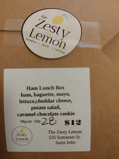 Read moreI have been wanting to try Zesty Lemon for a while now. While living at the hospital with my son I had the opportunity to grab one of their "lunch boxes" from the gift shop. The packaging was so cute and not realizing there was a cookie in the lunch box I also grabbed a lemon bread. The sandwich was delicious. The bread was fresh, the ham was nice and Smokey and it was not soggy at all. I wasn't a huge fan of the potato salad. But that was mainly because I'm not a huge fan of celery, peppers and other veggies in my potato salad. I did still eat it without complaints. The cookie was chocolate caramel and hit the sweet tooth spot. I am too full to eat the lemon bread but took a corner off to review. It is so good. Nice and lemony! I cant wait to have the opportunity to go to the...