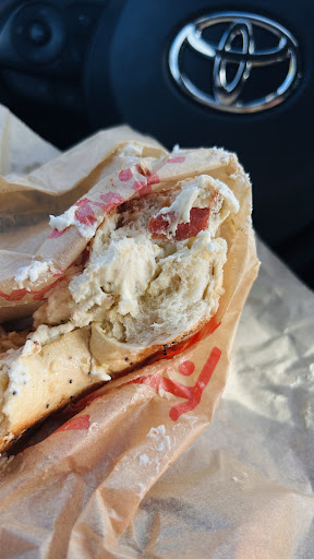 I am writing to raise a serious complaint regarding an incident that took place at one of your locations. I ordered an Everything Bagel toasted with butter and herb & garlic cream cheese. Halfway through eating it, I discovered a chunk of meat inside the bagel.