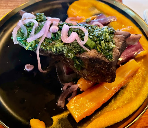 The short rib was so tender, and loaded with rich marbling and full of flavour. The chimichurri sauce and marinated shallots paired nicely with the beefy flavour of the short rib, adding a fresh and bright taste to the overall A+ dish. It was thoughtful of them to ensure the dish had a healthy starch and veggies (mashed sweet potatoes, and glazed carrots)