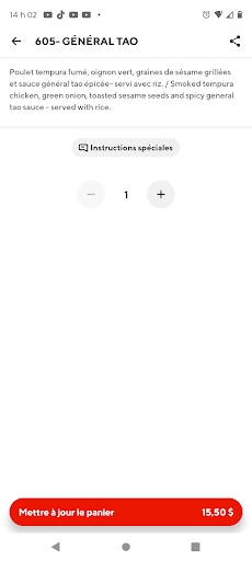 Read moreJ’ai fais venir par DoorDash ma commande qui a été confirmée par le restaurant. Cette commande contenait entre autres un Général Tao . A 19:13 quand le dasher est en route ( presque arrivé H vers chez moi j’apprends par courriel que mon repas n’est pas disponible:( et bien j’ai du commander ailleurs au final . WoW pourquoi pas avoir avisé avant . Ça m’es déjà arrivé et le resto m’avait appelé , mais clairement celui-ci a pas la même éthique de travail. Je commandais au 2 semaines et c’est fini pour moi . Suite à votre réponse effectivement tout le reste de la commande m’a été livré à livré à 19:31 mais à 19:13 j’ai reçu un courriel qui indiquait qu’une partie du repas soit le miens ne s’y trouvait pas et que je serai remboursé… que c’est il passé ?? J’ai commandé 2x soupe won ton , des sushi pour mon mari et pour moi du général thao… mais le général thao n’y étais pas et le reste est bien...