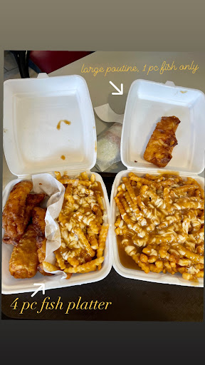 A decent take out. A huge menu! It takes a minute to skim the bilingual menu. Staff is very courteous and prompt. You can clearly see the kitchen from the cash. It looks like a well oiled machine from where I'm standing. This was my third time coming in. Food was good but not great. The fries and cooked nice and golden but kind of bland. The club house was good. The poutine was ok and was made with shredded cheese. I'd prefer curds. The clams could've been in the fryer for a couple more minutes. The dining room has a seafood restaurant feel but it's also a bit dated. All in all, a decent spot for...