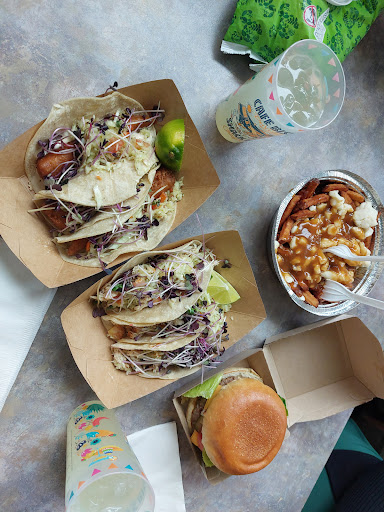 We ordered the petite buffalo chicken poutine and three tacos The poutine portions were quite substantial and filling. ...
