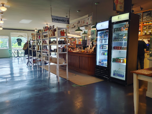 Belle terrasse, belle salle à manger très grande, esthétique et propre et que dire des produits que le bistro tient. On y trouve du nougat, du chocolat, des cafés en grain mais aussi des accessoires pour faire son café à la maison, allant du Bodum à la cafétière manuelle et toutes des marques de qualité.