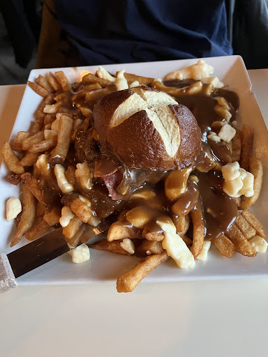 The size of the costaud burger did not disappoint. The cheese curds were quality, although the gravy was too salty to finish.